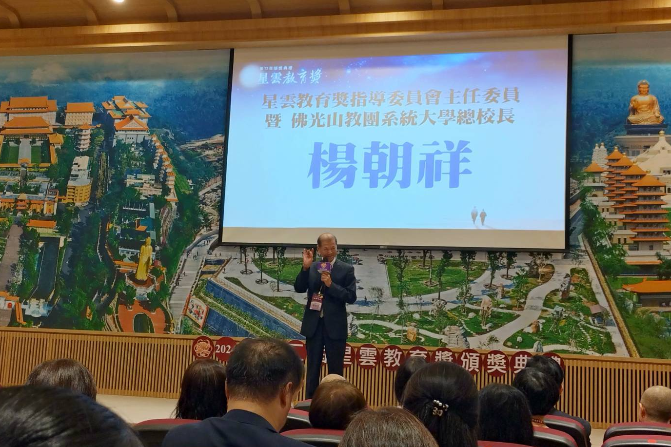 第十二屆星雲教育獎,今年一共有二十位教育工作者榮獲「典範教師獎」,獲獎的二十位典範教師分別來自於特教、醫學、宗教學等多元領域,星雲教育獎指導委員會主委楊朝祥總校長表示,目前社會上有許多肯定優秀教師的獎項,而星雲教育獎,則是評選出讓人感動的教師,可以作為其他教師的典範