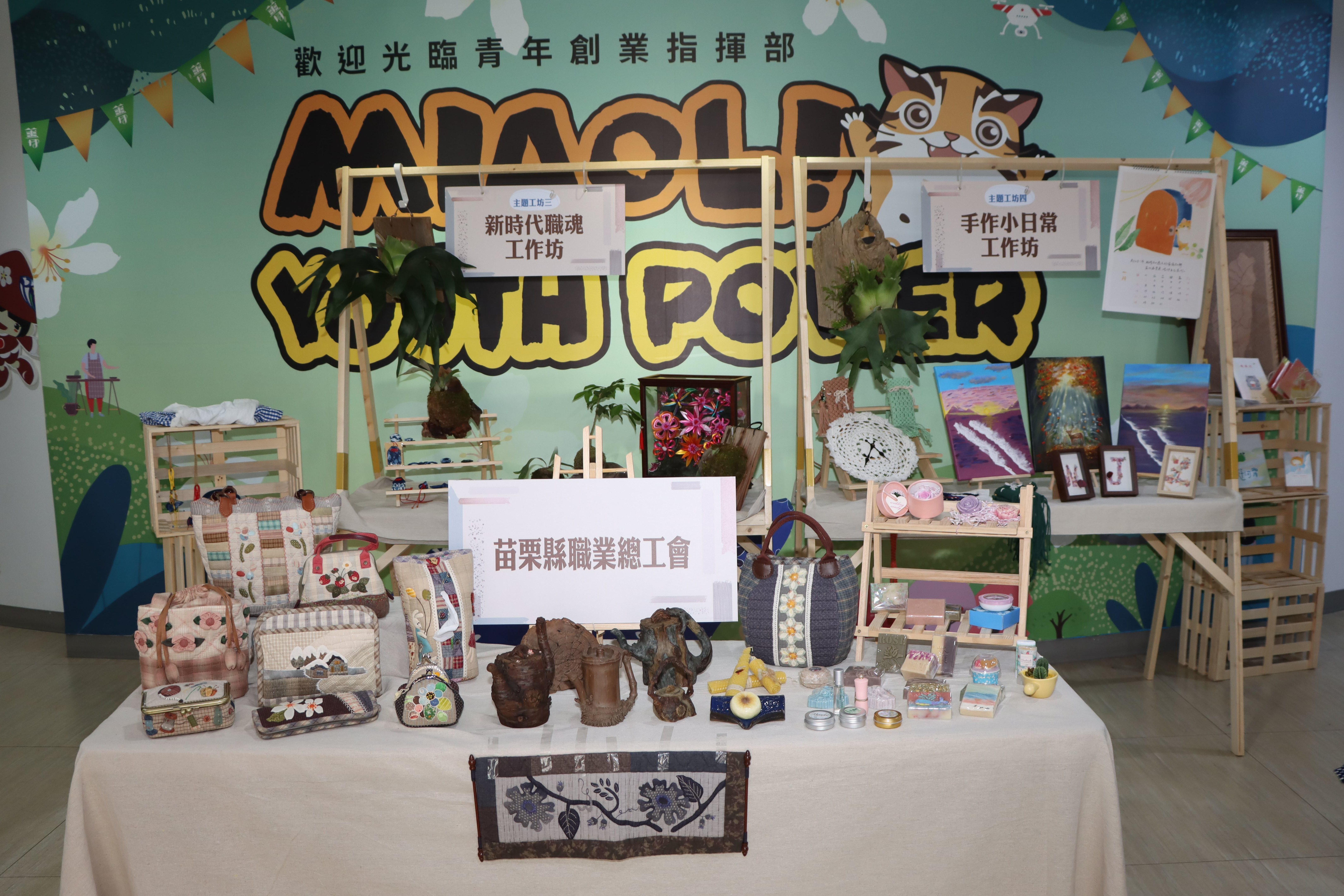 苗栗縣政府勞工及青年發展處表示,今年課程多元豐富,未來因應科技潮流,也能加入AI智慧的課程,讓青年學子事業有所突破,並藉由科技的進步提高工作效率及收穫,希望藉由工作坊讓青年朋友學習第二專長,開闢一條新的職涯道路。「職孵山城 手路菁品」青年職人創新孵育工作坊成果展,展期自即日起至5日,歡迎有興趣的朋友前往苗栗縣青年指揮部2樓共享空間參觀。