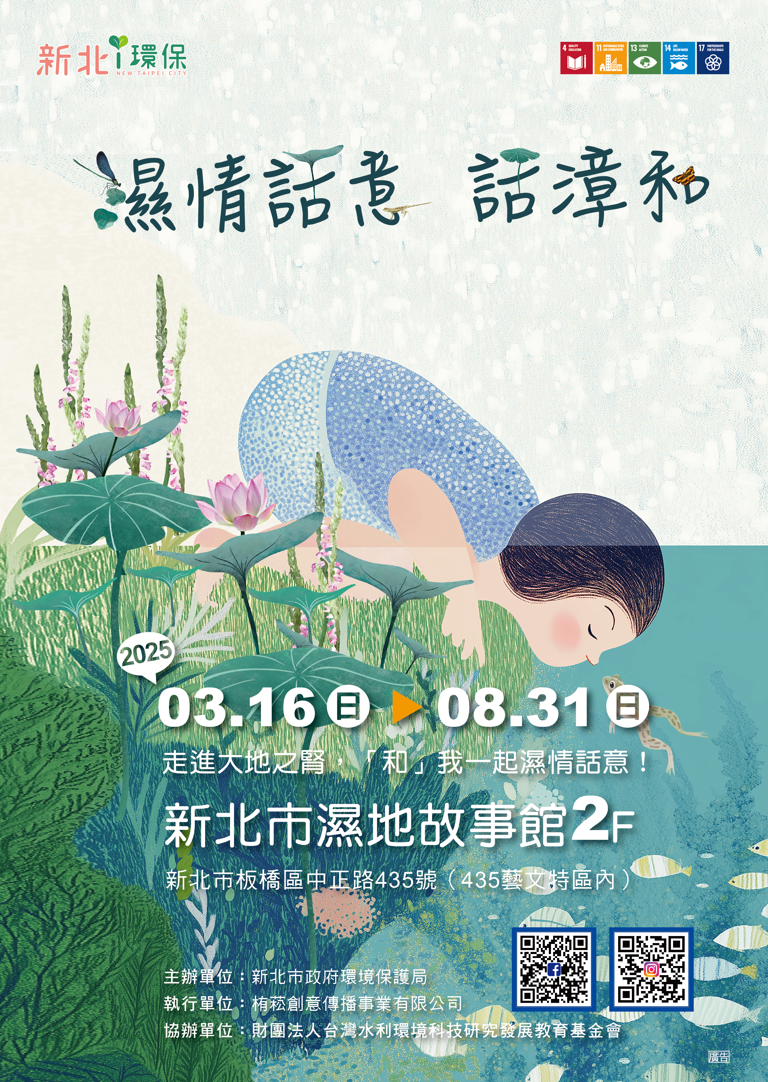 新北市環保局將於3月16日起,在板橋435藝文特區的濕地故事館舉辦最新水環境教育特展「濕情話意–話漳和」,以漳和濕地為主題,帶領民眾深入了解這片濕地的生態多樣性與環境重要性。特展將展出漳和濕地的生態特色、動植物多樣性,並介紹其對地球生態系統的關鍵角色。展期自3月16日起至8月31日,免費開放參觀。