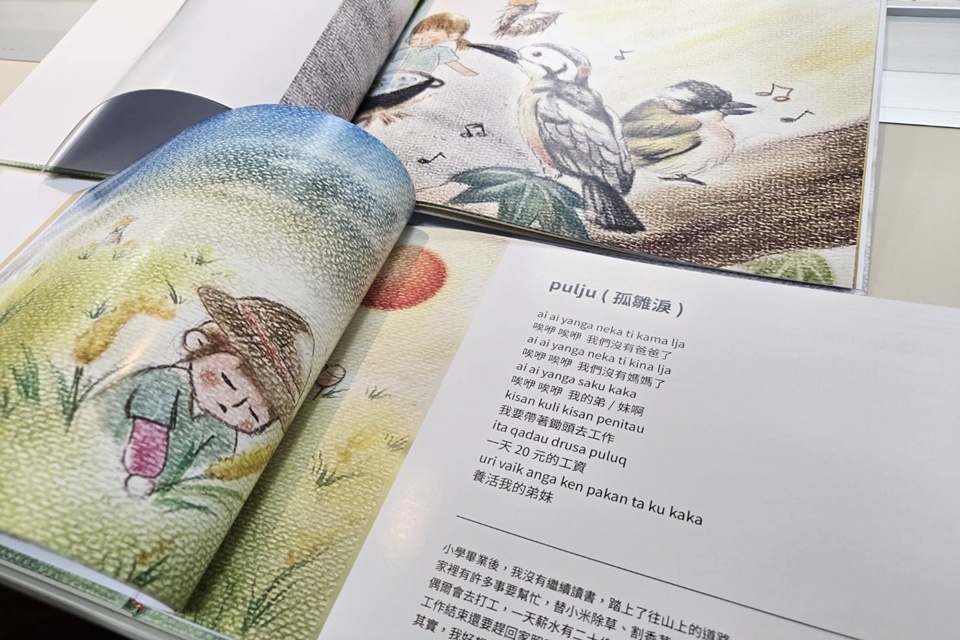東大團隊在與據點長者相互陪伴過程中,錄製聆聽到的排灣族傳唱歌謠,並將長者口述的生命故事轉化成繪本,當中收錄部落長者童年記憶與生命歷程的6首歌曲故事,可從繪本畫面敘事內容理解情境,也可掃描QR code搭配聆聽長輩吟唱的大鳥部落方言,細品深遠悠揚的獨特韻味。