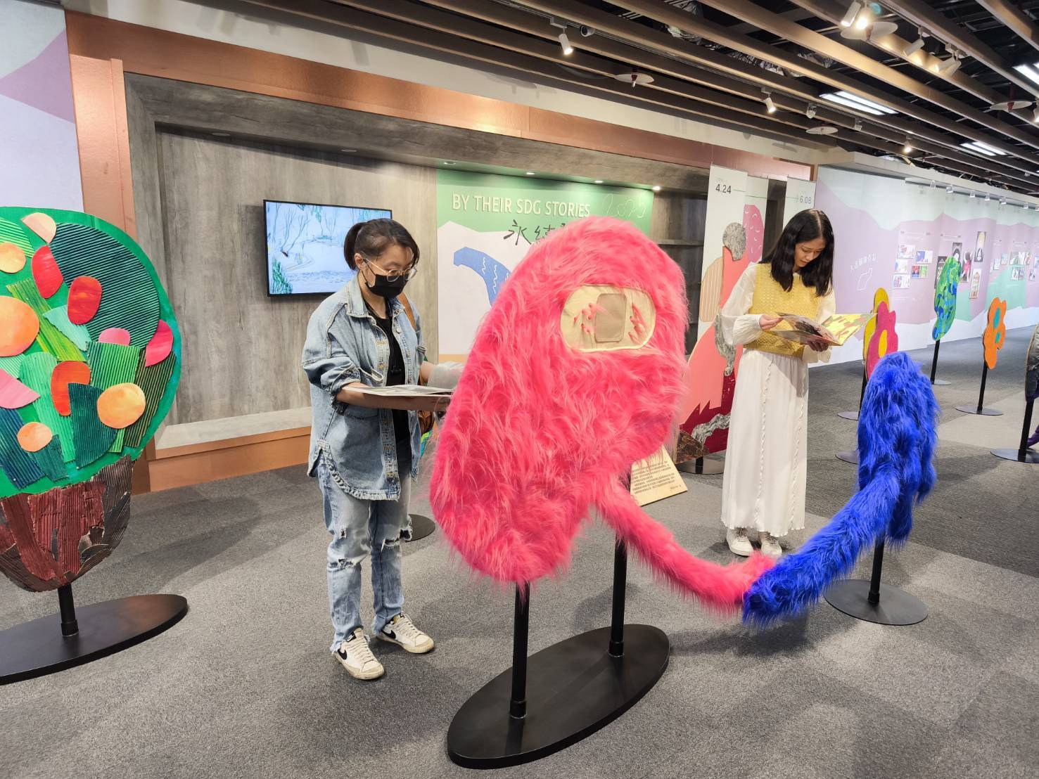 策展人、波隆納插畫大獎入選者Ballboss說明,本次展覽除展出得獎作品外,特別選出國臺圖《永續發展圖書資料閱讀手冊》中的繪本藏書進行展示,充分結合聯合國17項SDGs,讓參觀者能更具象的了解這些永續發展目標。