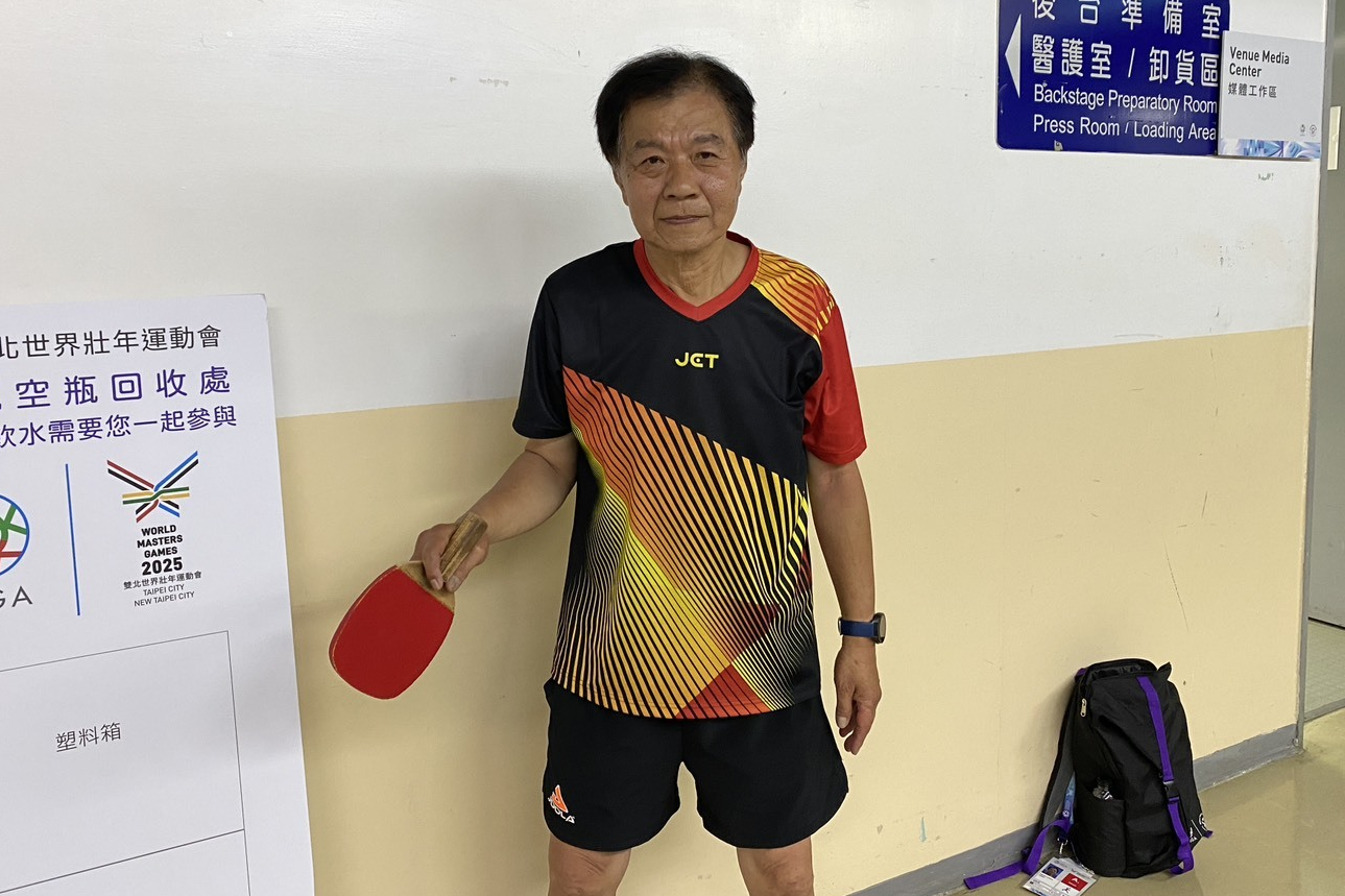 • 2025雙北世界壯年運動會今天(21日)展開桌球項目比賽,71歲選手楊能傑也站上賽場,參加休閒混雙、70歲以上組別。(記者蘇瑞雯拍攝)