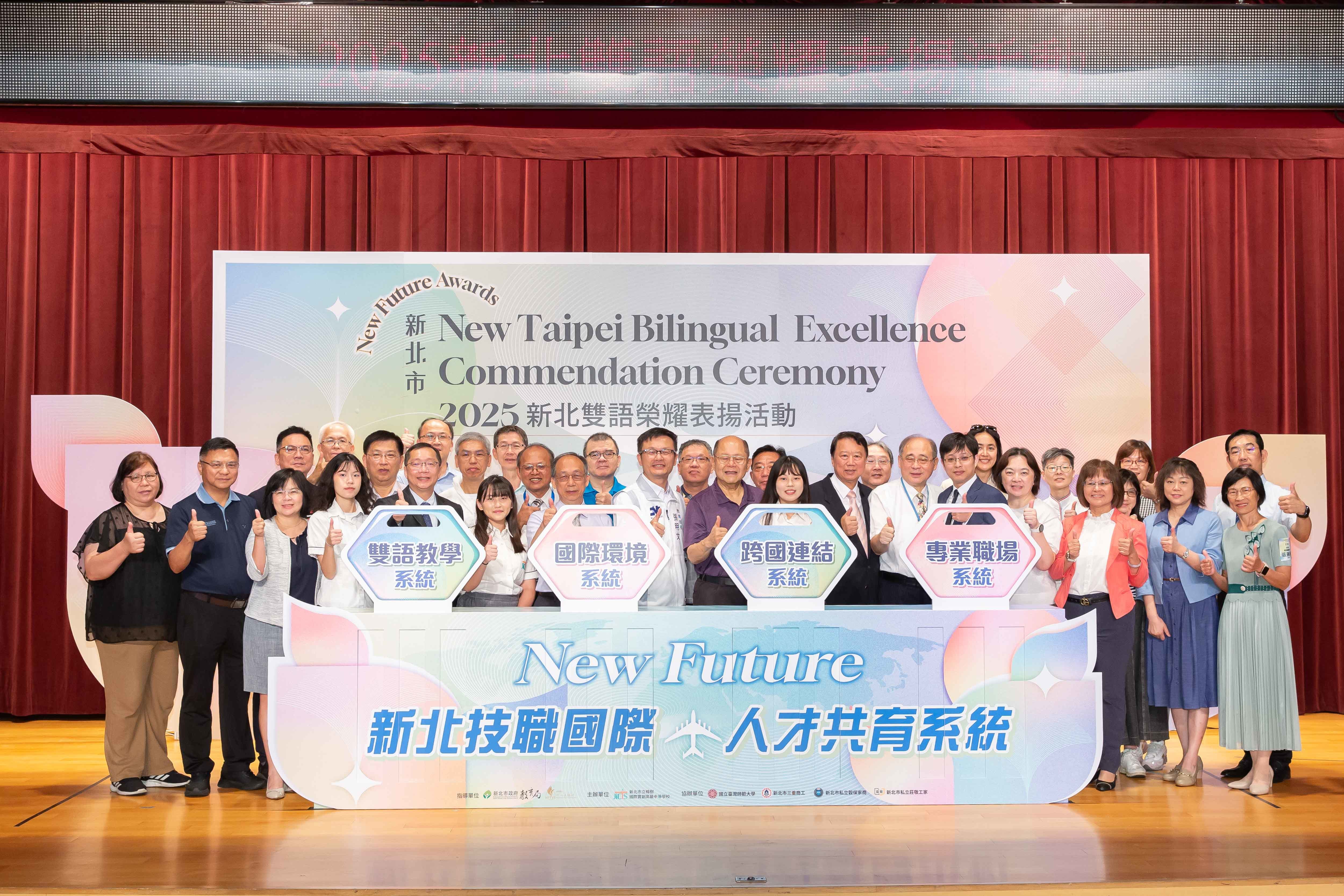 新北市教育局今(15日)舉辦「2025 新北雙語榮耀表揚」活動,表揚全市1,350位在雙語學習領域表現傑出的優秀師生,展現技職英語教育的豐碩成果,活動也凝聚產官學能量,感謝眾多合作夥伴共同推動雙語教育學習。新北市教育局長張明文表示將持續強化「動手做、學英文」的策略實踐,讓學生在實作中累積語言力,為接軌國際職涯打下堅實基礎。