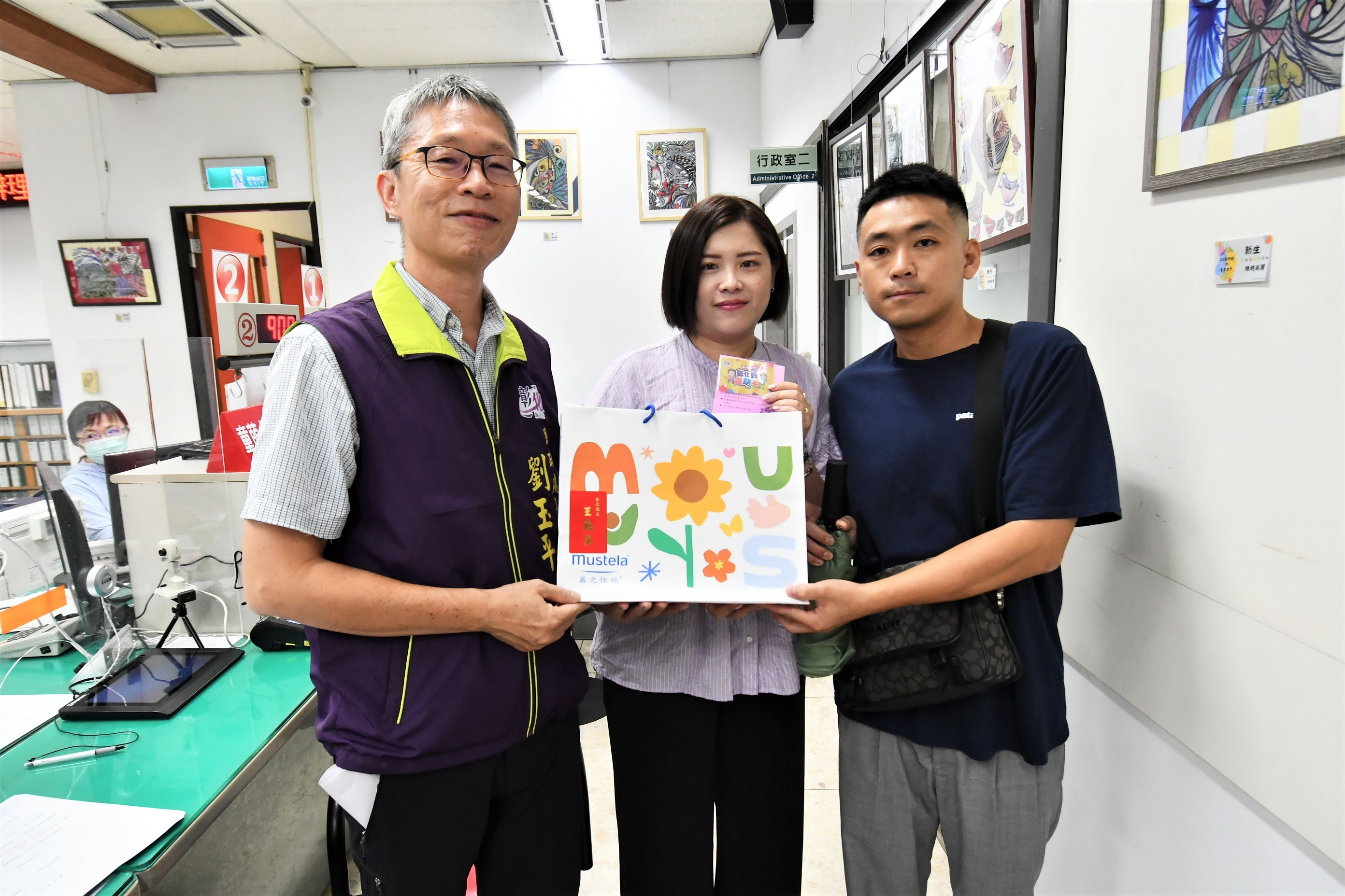第一張童萌卡領取人王先生表示,很開心也很榮幸領取到第一張童萌卡,謝謝縣政府推出這項政策,他拿到卡片後,打算購買奶粉、尿布、日用品等。