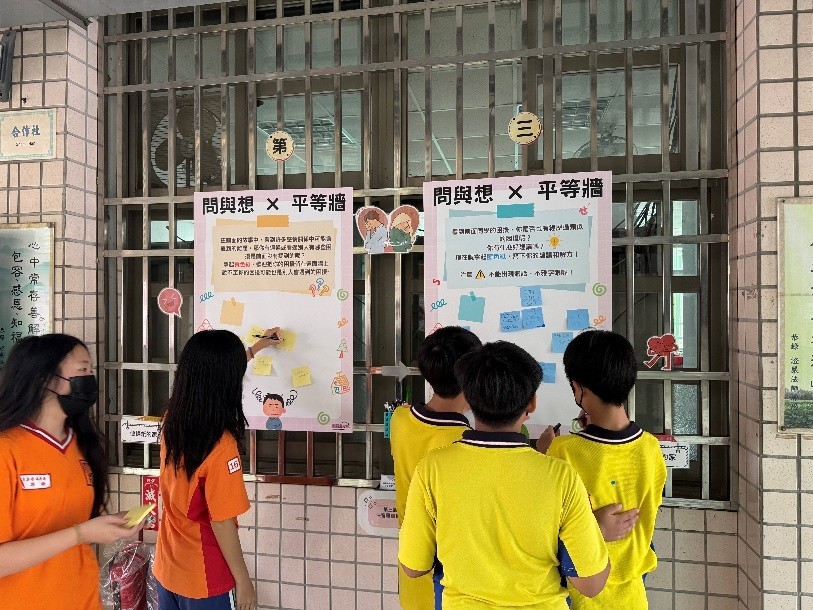 大成國中指出,這次展覽聚焦在戀愛互動中的性別角色分工,讓學生思考在感情中,是誰「應該主動」或誰「理所當然」需要付出更多。從告白、送禮、行程規畫到外貌打扮,展覽逐步揭示社會對男女角色的隱性期待,並邀請學生翻開展板,了解問題背後的真相。活動期間吸引全校2,000多位師生參與,學生透過貼紙投票、故事回饋與心情留言,表達自身在戀愛與關係中的真實感受。