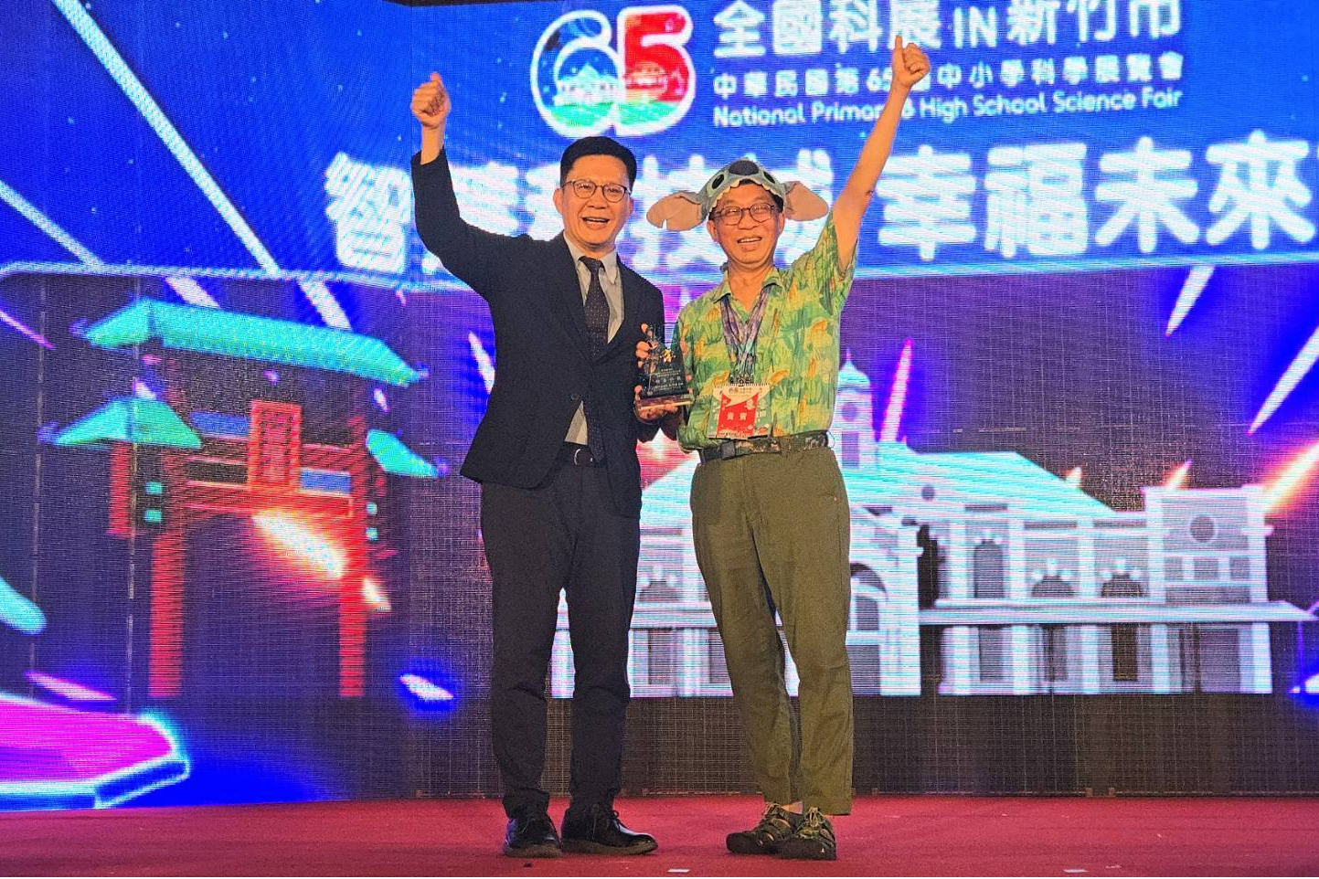 第65屆中小學科學展覽會在新竹市立體育館登場,開幕典禮表揚53名長期投入科展指導工作的優良教師,感謝他們對科學教育的堅持與奉獻,壓軸為彰化縣陽明國中教師蔡名峯,他是今年所有獲得表揚的優良指導教師中,唯一參展屆數超過20屆的教師。