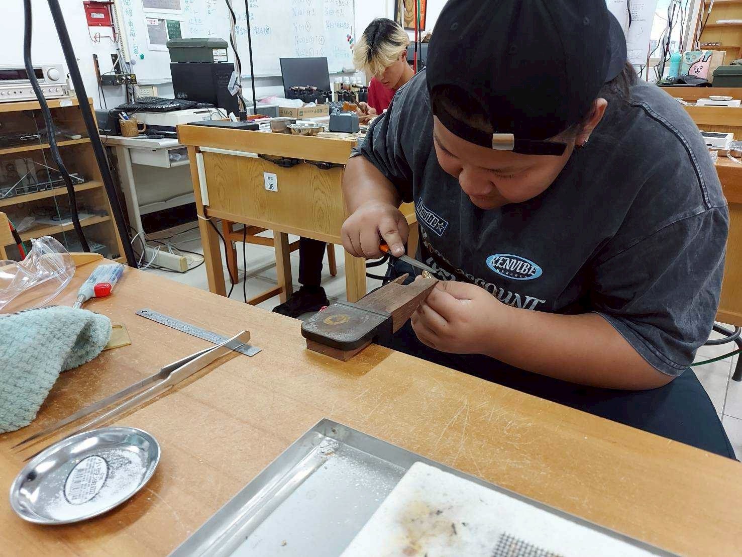 臺東縣關山工商時尚工藝科今年首次輔導學生報考「金銀珠寶飾品加工-丙級技術士檢定」,有5位學生參加,全員通過術科測驗,其中4人順利取得證照,展現優秀的金工實作能力。