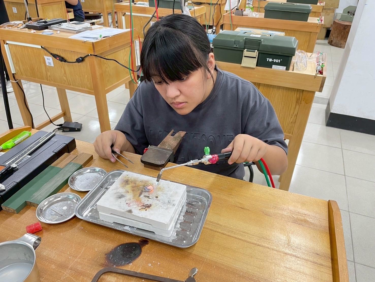 關山工商表示,時尚工藝科成立於112學年度,是花東唯一開設金工課程的高職學校,為了幫助學生練習,學校打造專業實作空間,配備焊接、打模與拋光等訓練設備,提供學生無論是課內學習、證照輔導或競賽培訓,能有安全又完整的學習環境。