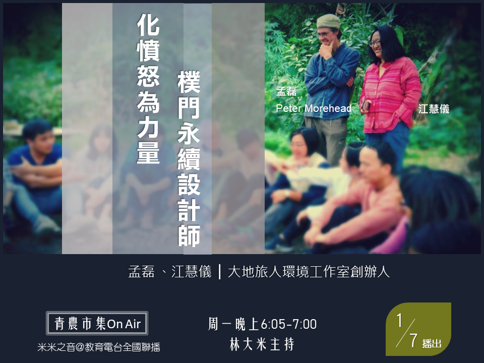 江慧儀和丈夫孟磊(Peter Morehead)是大地旅人環境工作室的創辦人,也是台灣樸門永續設計的推動者。每年都有來自世界各地、各行各業的人專程來到台東的樸門教育基地,進行為期二週的樸門永續設計認證課程(PDC),本集節目,大米趁著Peter和慧儀在PDC課程的空檔,一起坐在他們的食物森林裡聊聊天,從不一樣的角度認識樸門,也感受這二位令人敬重的樸門夫妻檔一直親身實踐不遺餘力、為永續地球資源而教育不歇的毅力。