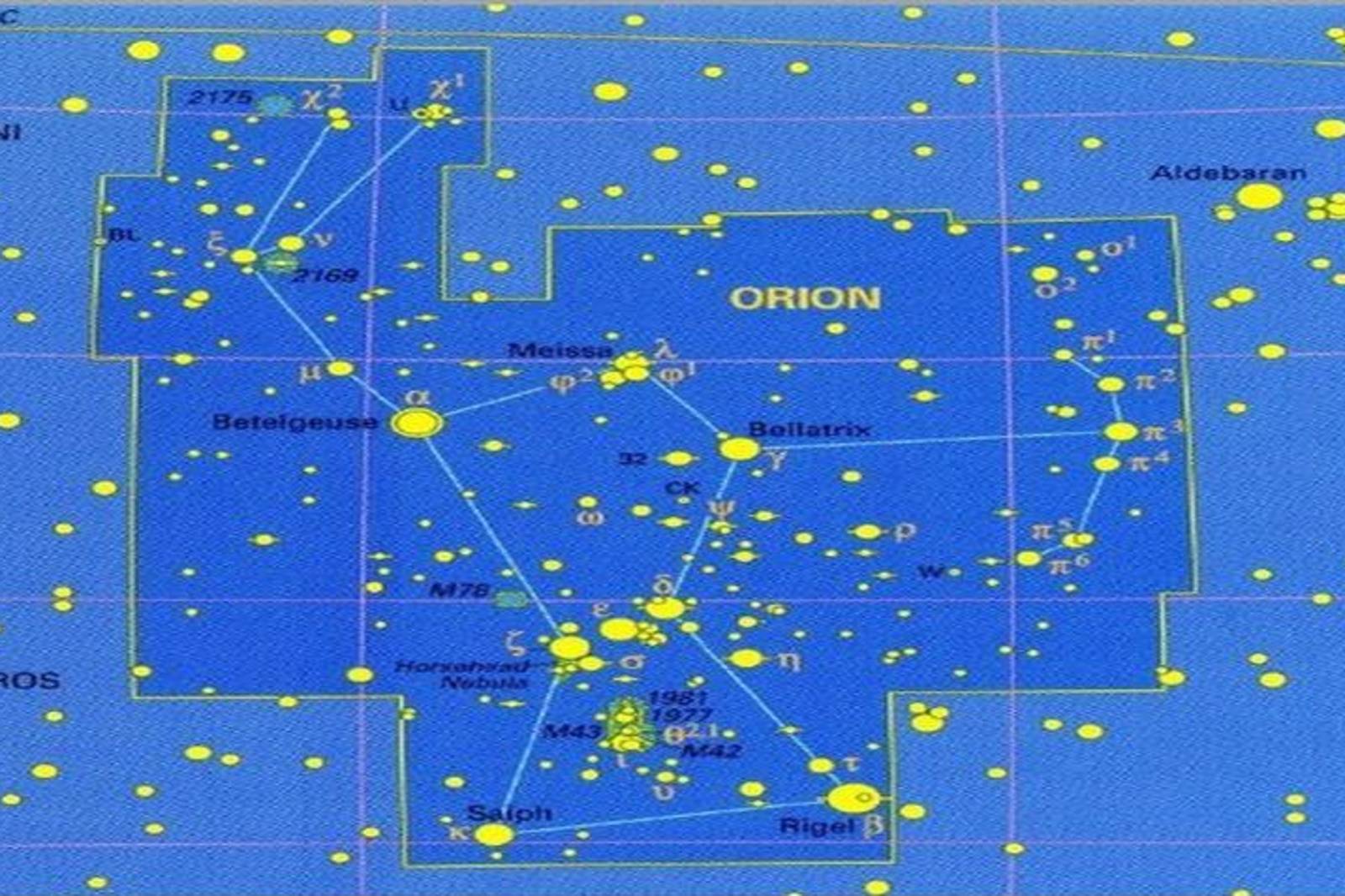 獵戶座在臺灣一樣是面向南方觀看,我們在今天晚上看到冬季的獵戶座就是星座之王,它有七顆非常亮的星星。古埃及文明有非常多的金字塔,金字塔的位置就是按照獵戶座的位置建造的,獵戶座中央有三顆星排成一直線,就像獵戶的腰帶,有3000多年歷史的金字塔一樣有三個一排。