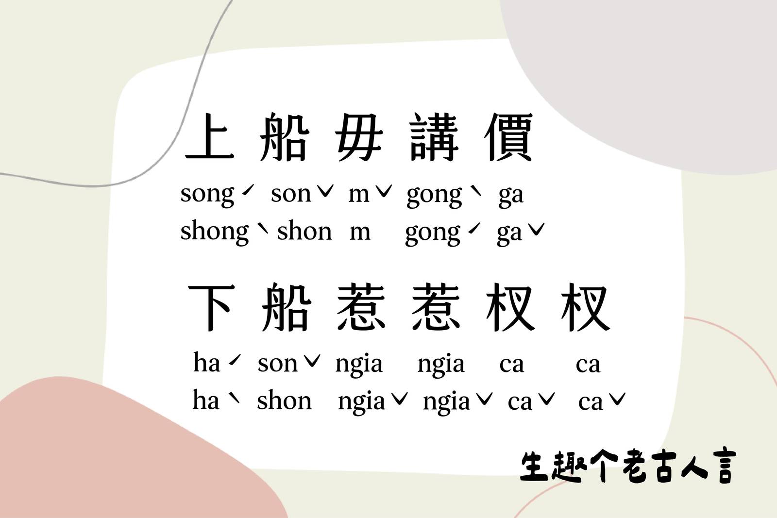 海陸shongˋ shon m gongˊ gaˇ ,haˋ shon ngiaˇ ngiaˇ caˇ caˇ