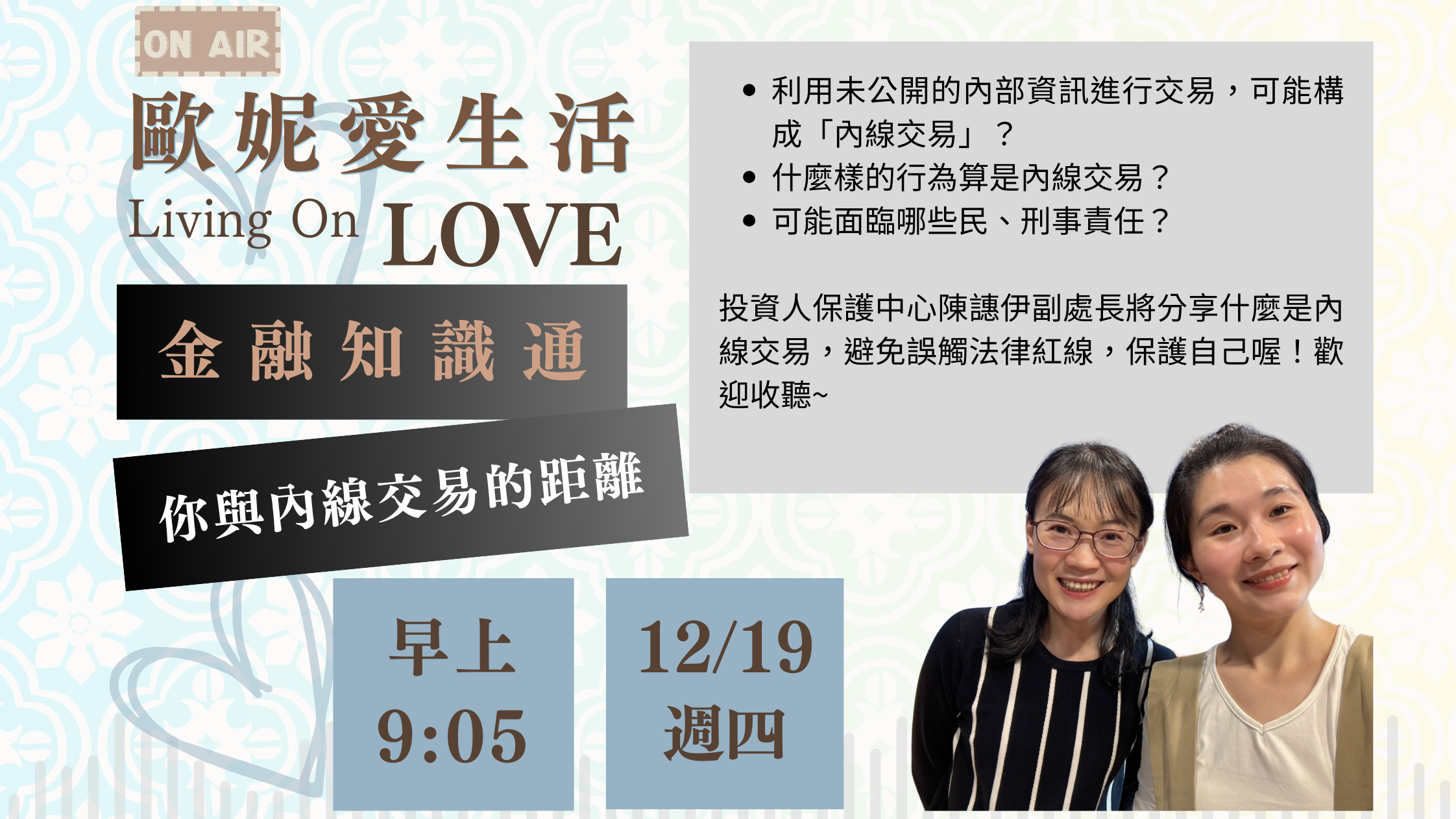 今天我們邀請到投資人保護中心的陳譓伊副處長來分享什麼樣的行為屬於內線交易,幫助大家認識「內線交易」,避免誤觸法律紅線,知道如何保護自己喔!