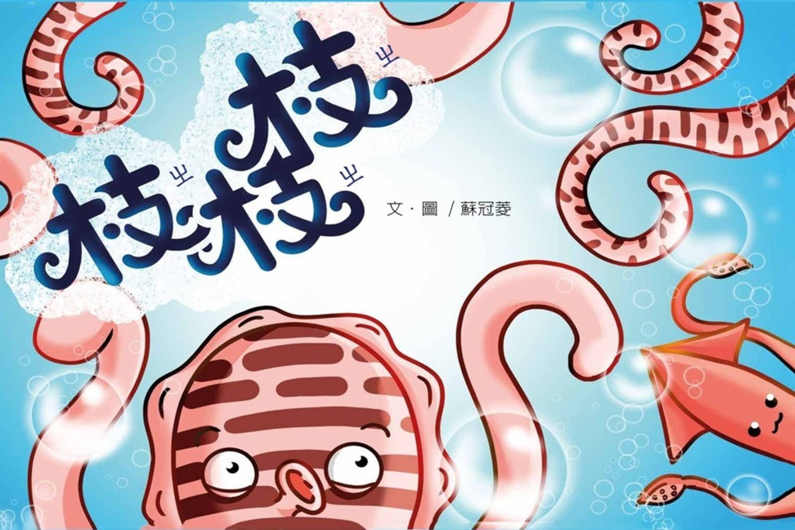枝枝是一隻剛出生的花枝,由於分辨不出來個體差異,所以常常跑錯教室。經過三天的調適與老師們耐心的講解之下,終於學會如何分辨花枝、魷魚、中卷、軟絲,也再也沒有跑錯班級了。