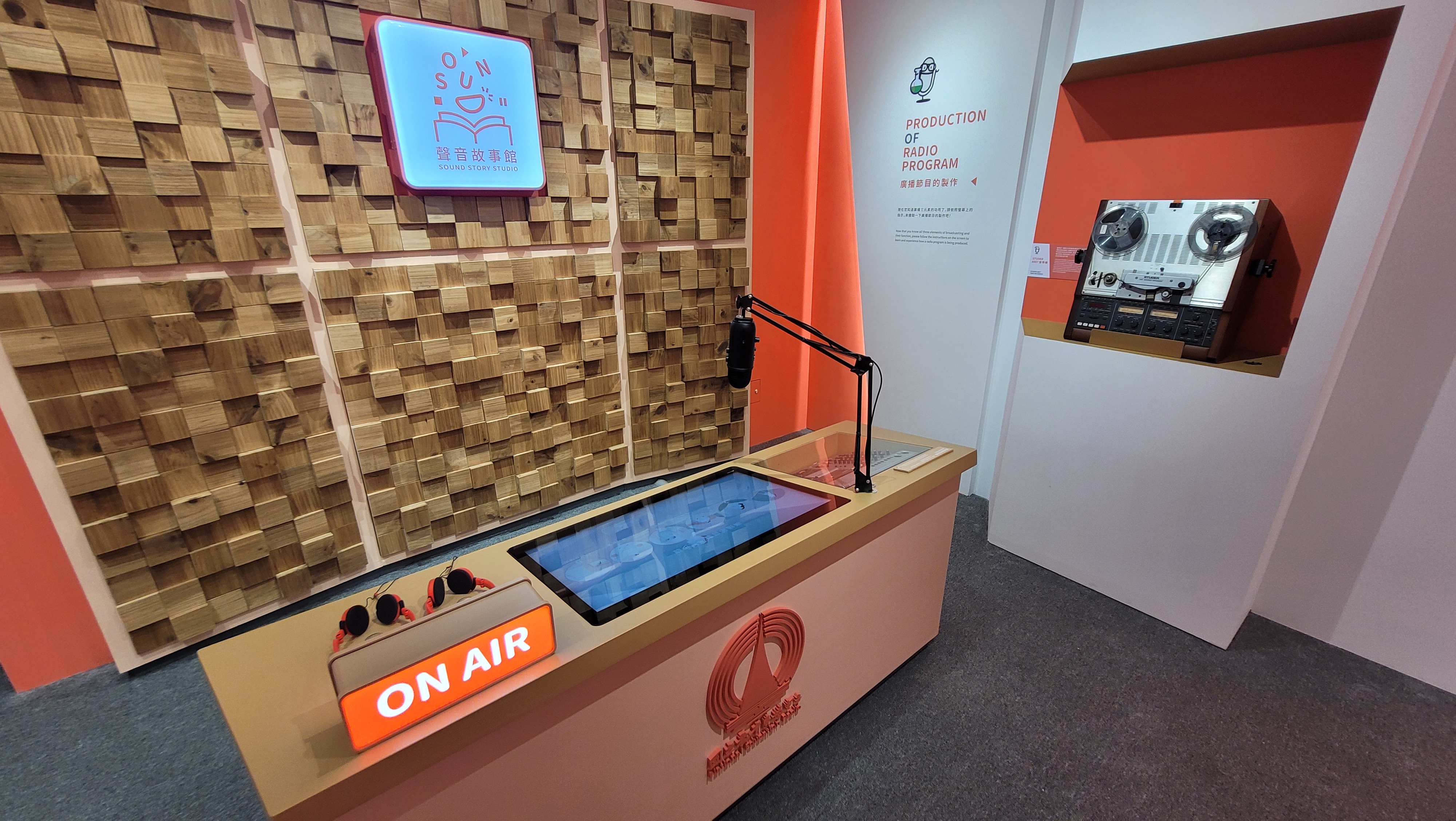 「廣播製作體驗」專區打造錄音室情境,透過觸控螢幕的指引錄製屬於自己的廣播live show,還可以透過雲端下載、分享錄製成果至社群平台。