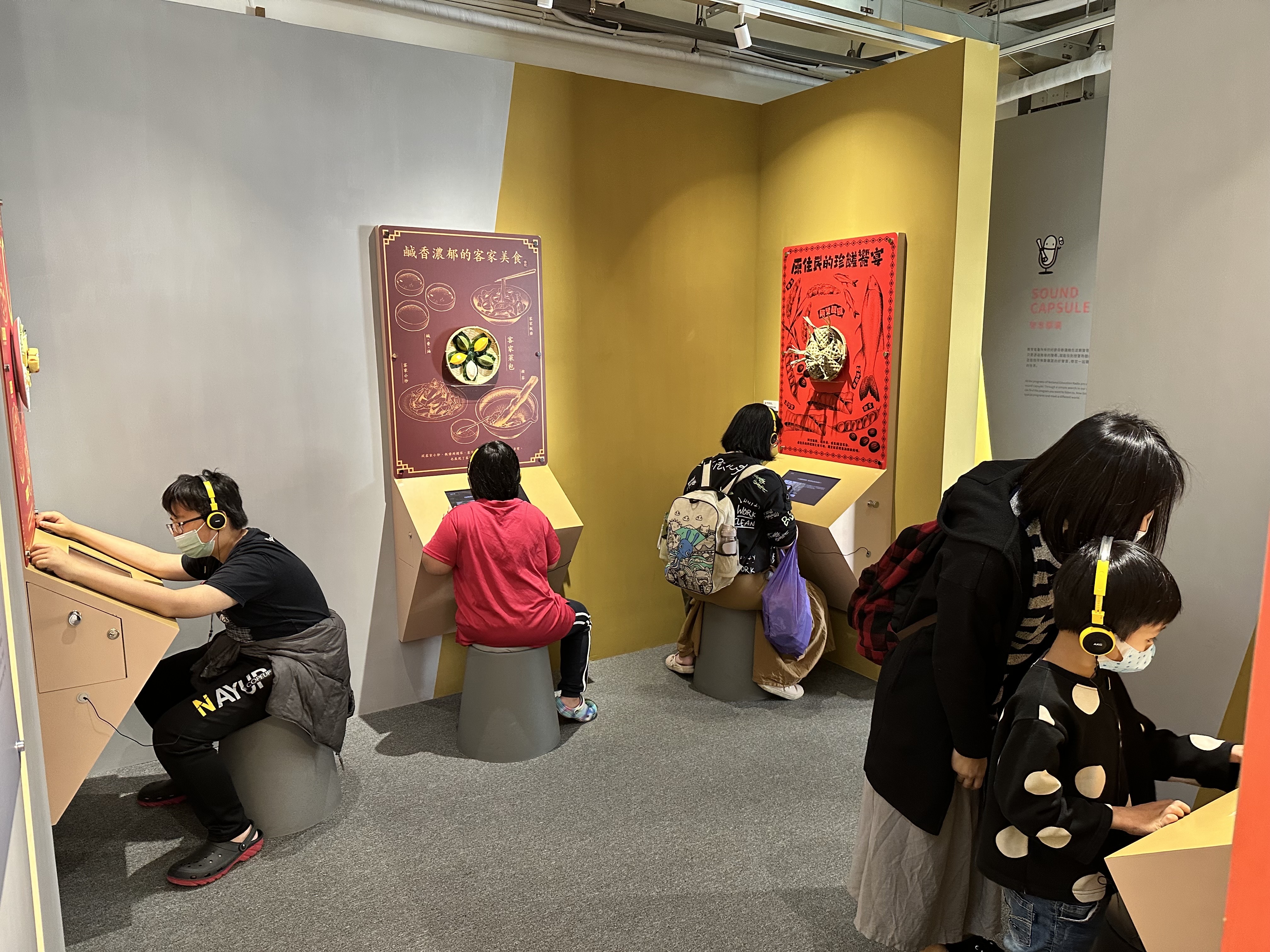 「臺灣美食街」特展區共有五組可供民眾現場聆聽的「聲音小站」,搭配立體化的食物模型,供民眾細細聆聽,品味不同飲食文化故事的好時光。「原住民的珍饈饗宴」聲音小站搭配了來自阿美族的情人粽-「阿里鳳鳳」的食物模型,讓民眾對原住民的飲食文化可以有更多認識。