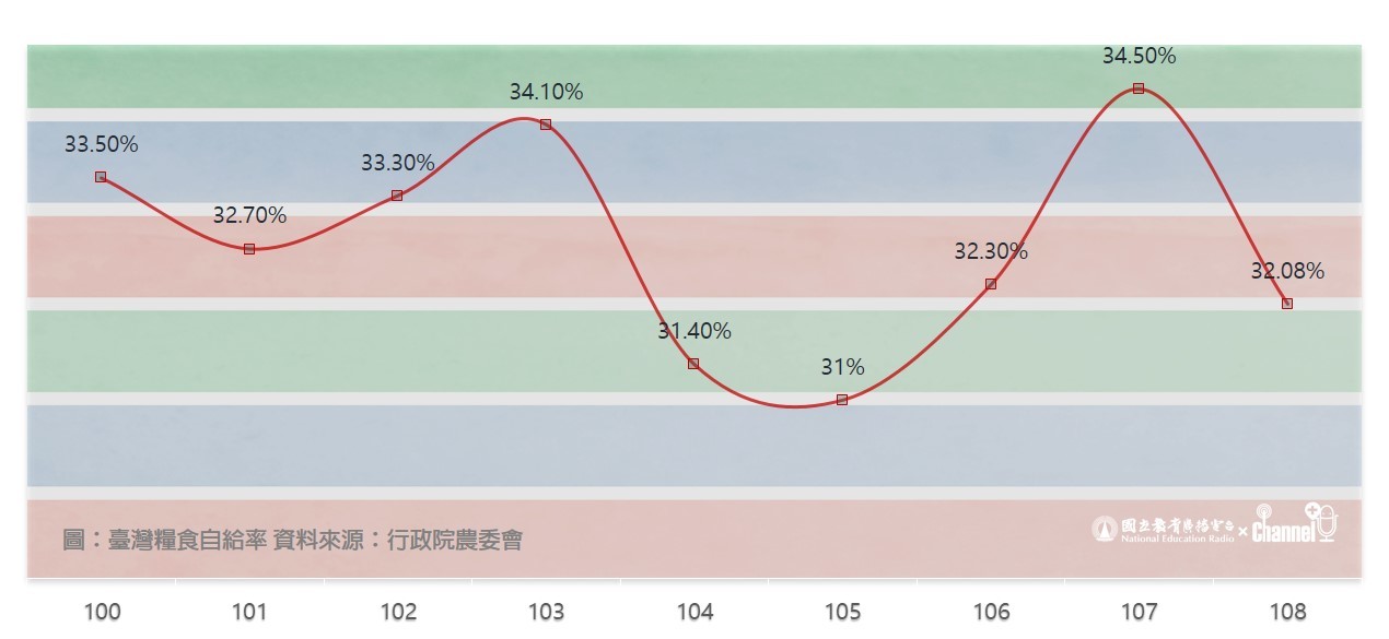 「今晚,我想來點…」 在我們用手機隨時隨地都能享用美食盛宴的同時,有數億人正處於無法獲得健康食物的危機當中。 聯合國糧農組織(Food and Agriculture Organization, FAO)指出,自2014年以來「飢餓」和「肥胖」的人數不斷增加。 目前全球飢餓人數將近6.9億,比2019年增加了約1000萬人,而在新冠肺炎Covid-19的影響下,飢餓的人數可能還會再增加。 這波疫情燒出了糧食安全的危機:若是世界各國農產品持續出口限制,台灣有足夠的糧食可以供應嗎? 在面對越來越嚴峻的全球糧食危機,仰賴進口的飲食是很大的風險。 民國100年農委會召開「全國糧食安全會議」,訂定了一個目標:109年國內糧食自給率要提高到40%,而在107年時糧食自給率也創下了15年來的新高,達到34.6%。 儘管如此,今年(109)年9月底出爐的糧食供需年報顯示108年的糧食自給率只有32.1%,似乎離109年40%的目標還有很大的努力空間。