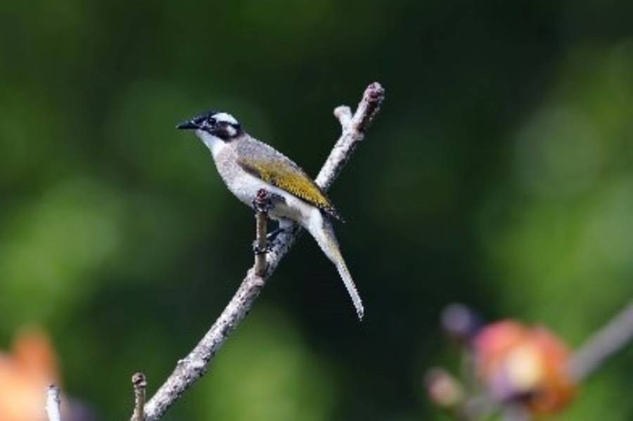 這天是2021年3月31日春天春分節氣 晴朗天氣的上午,從台中出發開車經過74快速道路,銜接139縣道後不久就抵達賞鷹平台。這裡是八卦山桃源里,屬於八卦山脈的一部分,保留低海拔豐富林相,營造豐富的生態環境。在這裡我們聽見了一場動聽的自然聲景,「歸」「歸」「歸」及「甲歸」的鳴唱聲不絕於耳,約有5隻活潑好動鳥兒的即興樂章,仔細察看,這些鳥兒造型十分有趣,過眼線為黑色,感覺頭上戴著黑色面具,像極了矇眼大俠。